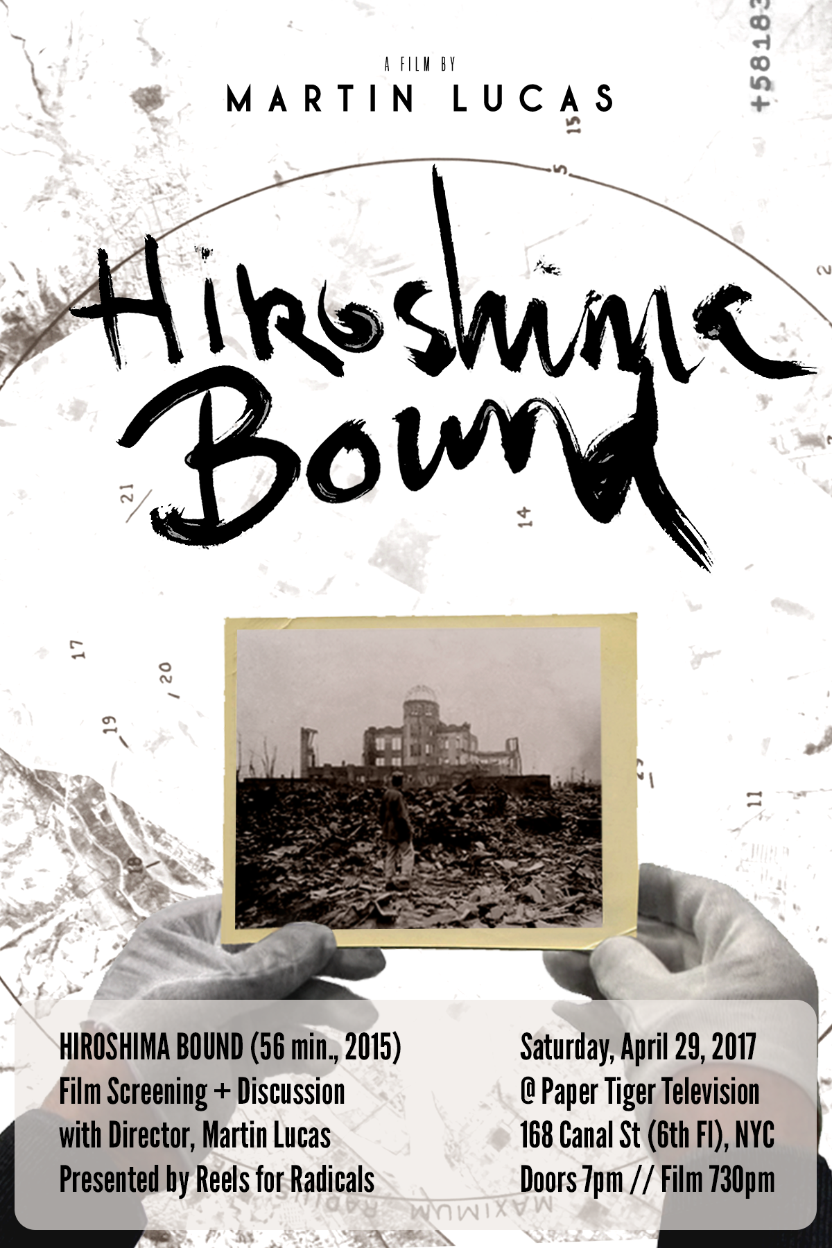 HIROSHIMA BOUND is a haunting hour-long essay-style interrogation of the traumatic mix of memory and amnesia that constitutes America’s understanding of the bombings of Hiroshima and Nagasaki, built from a mix of re-examined archival material, survivor testimony, personal meditation and visits to sites including The Lawrence Radiation Laboratory at Berkeley, White Sands Missile Proving Grounds, and the International Center of Photography in New York.