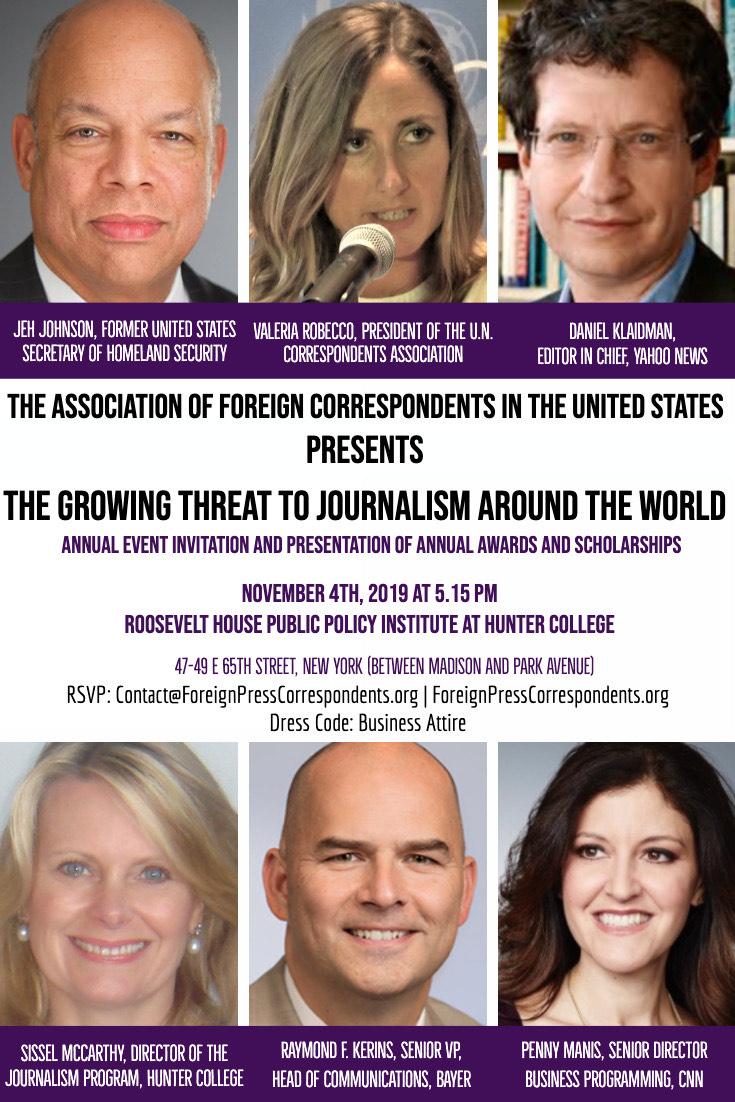 Prof. Sissel McCarthy will be moderating The Growing Threat to Journalism Around the World presented by The Association of Foreign Correspondents in the United States.