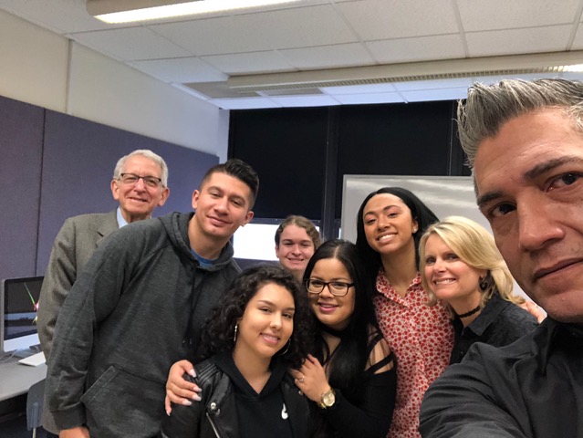 Professor Sissel McCarthy and one of her favorite journalism professors were back in the classroom together, after more than 25 years, last Wednesday. Lloyd Siegel, a 44-year veteran journalist of NBC News, visited McCarthy’s Studio News Production class to critique the latest Hunter News Now show. Siegel taught newsroom management at Columbia’s Graduate School of Journalism back in the 1990s during and after stints as a reporter, field producer, line producer, executive producer and vice president for news partnerships with NBC affiliates.