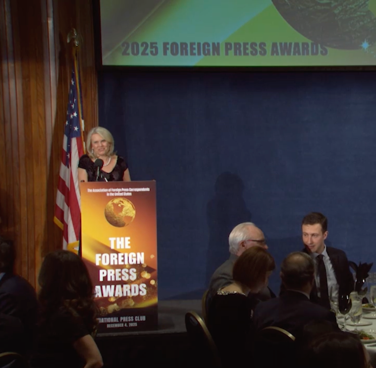 Professor Sissel McCarthy hosted the 2025 Foreign Press Awards at the National Press Club in Washington, DC. The annual awards ceremony celebrates the achievements of international correspondents working across the United States.