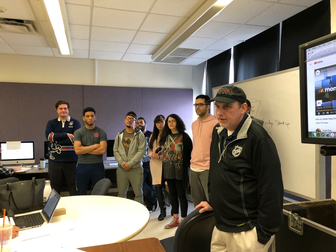 Students in Professor Sissel McCarthy’s Studio News Production class are getting ready for the third season of Hunter News Now, a biweekly newscast that focuses on the Hunter College community. Students will produce and anchor the 20 minute show that covers campus news as well as the arts and Hunter athletics. Chief CLT Renato Tonelli came to class last week to give students a quick lesson on their high definition cameras while Chief Digital Media CLT and Production Coordinator Peter Jackson introduced his tech-terns who will run the studio and control room. Studio news production students are already out and about on campus working on their first stories and looking for people to interview for our “Hunter Students Speak” series, so feel free to share your opinion and tune in for our first show on Wednesday, March 6th on the Hunter College Journalism YouTube channel.