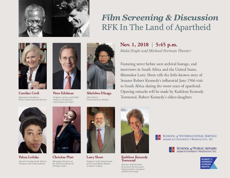 Featuring never before seen archival footage, and interviews in South Africa and the United States,filmmaker Larry Shore tells the little-known story of Senator Robert Kennedy’s influential June 1966 visit to South Africa during the worst years of apartheid.