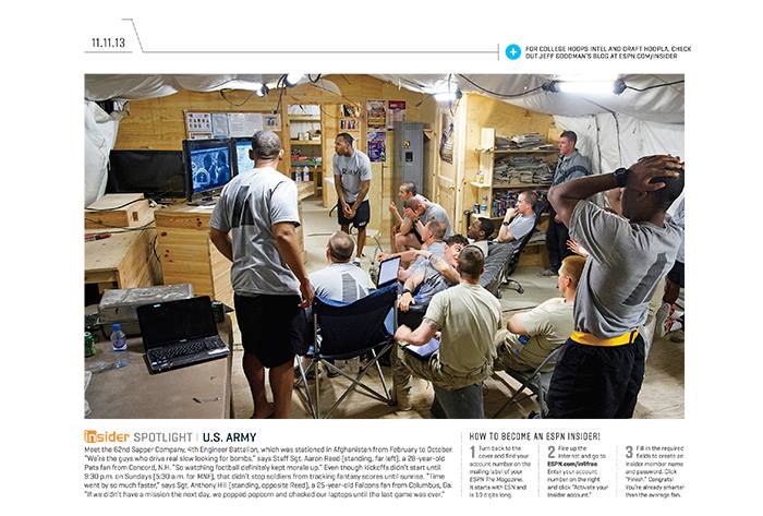 IMA student Nathan Fitch’s photography, Forward Operating Base in Afghanistan, will be featured in the new magazine issue of ESPN for November.