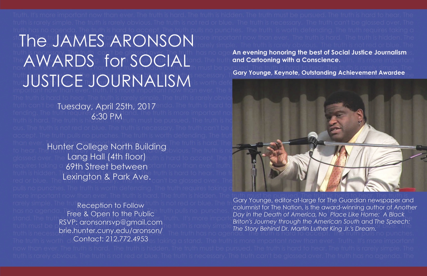 Join us at the James Aronson Awards for Social Justice Journalism to celebrate journalists who tell the truth.
