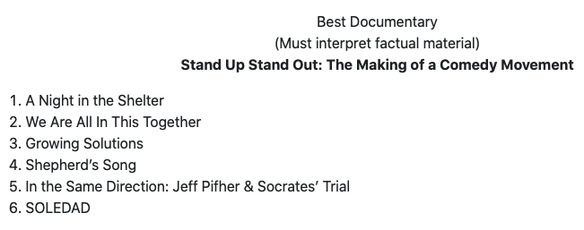 IMA alum David Pavlosky’s film Stand Up, Stand Out: The making of a comedy movement wins Best Documentary at the Santa Fe Film Festival.