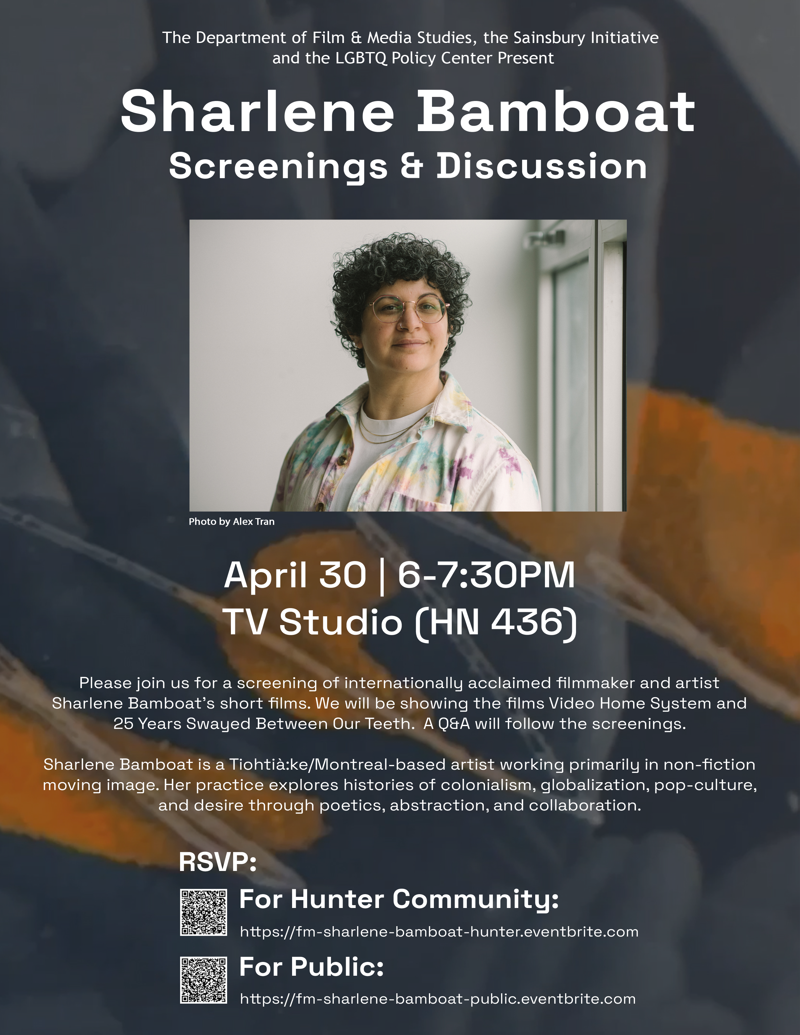 The Department of Film and Media Studies, the Sainsbury Initiative and the LGBT Policy Center present Sharlene Bamboat screenings & discussion.